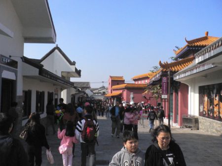 ngong ping village walking with buddha
